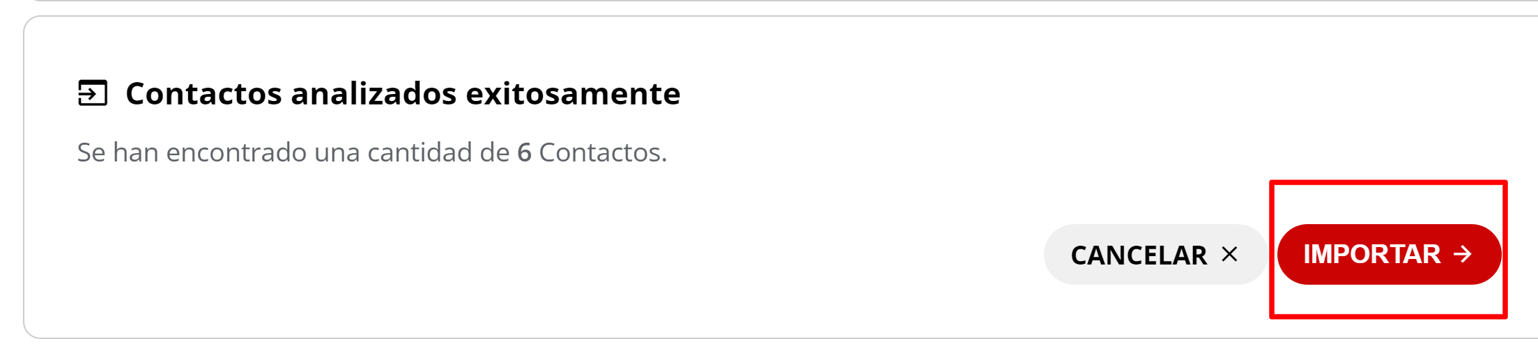 El sistema mostrará una notificación indicando los contactos que han sido agregados exitosamente y cuántos tuvieron errores debido a datos mal cargados o campos vacíos.