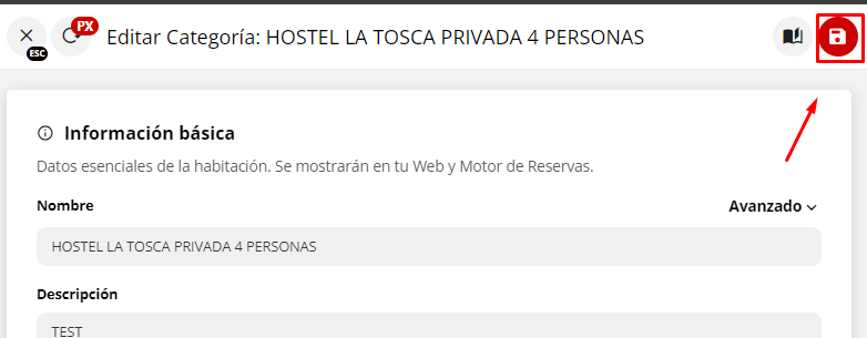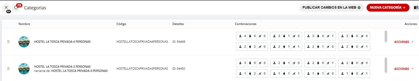 Una vez que hayas agregado todas las combinaciones necesarias para la habitación, presiona GUARDAR CAMBIOS. Este botón se encuentra en la parte superior e inferior de la pantalla.