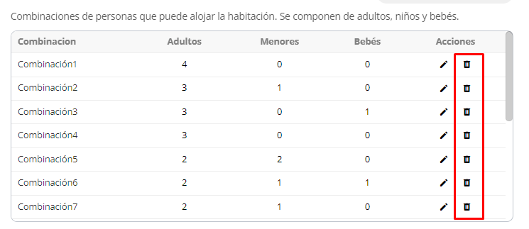 Si necesitas eliminar alguna de las combinaciones, haz clic en el ícono de tachito que aparece junto a ella.