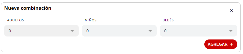 Introduce la combinación deseada entre adultos, niños y bebés, y luego presiona INSERTAR. Repite este paso para añadir cada nueva combinación.