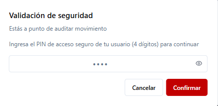 Esta acción bloquea la posibilidad de cualquier modificación o anulación del movimiento. Luego de ser auditado, ningún usuario podrá realizar ninguna acción sobre él. Los movimientos de dinero de las cuentas Proveedor que figuran también en la aplicación Cuentas Recaudadoras, también se mostrarán como auditados.