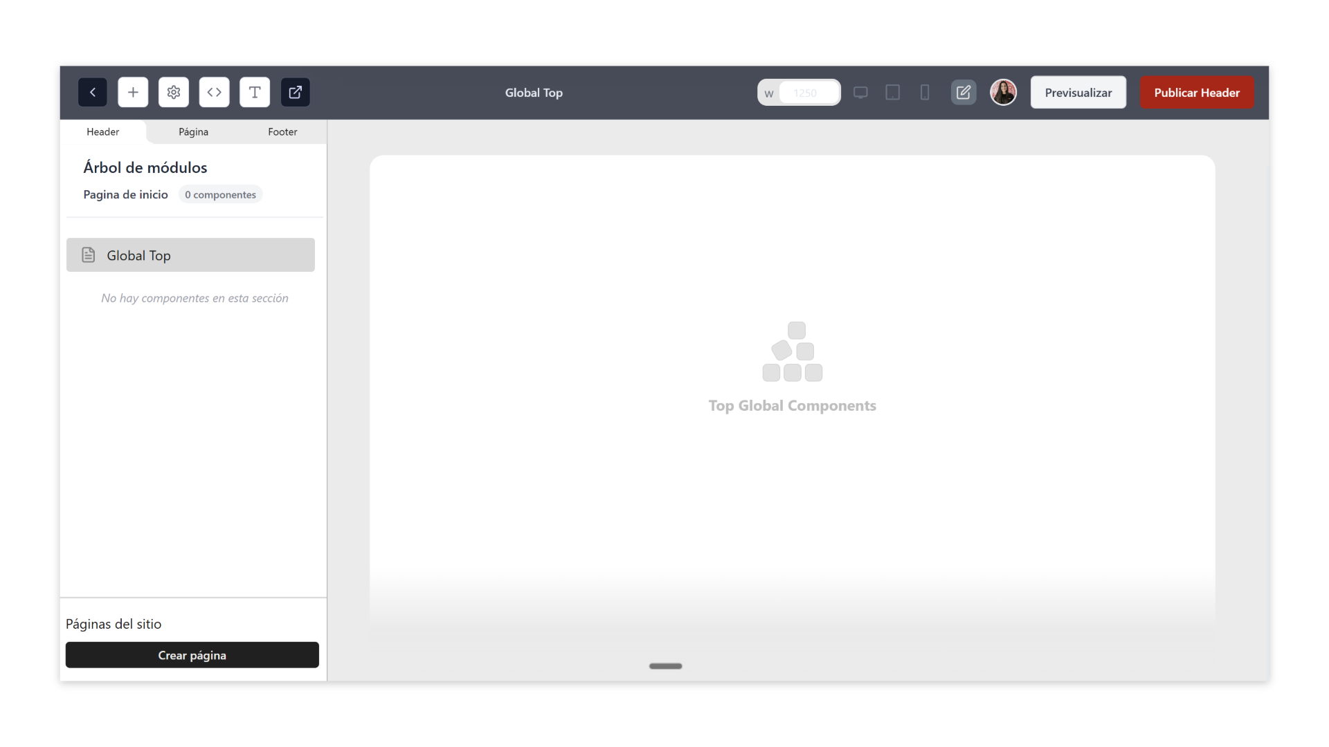 Se mostrará el área de trabajo correspondiente a los componentes globales superiores.