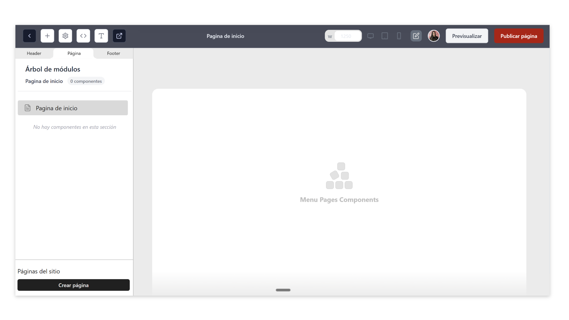 La sección “Página” corresponde al contenido central y específico de cada página.