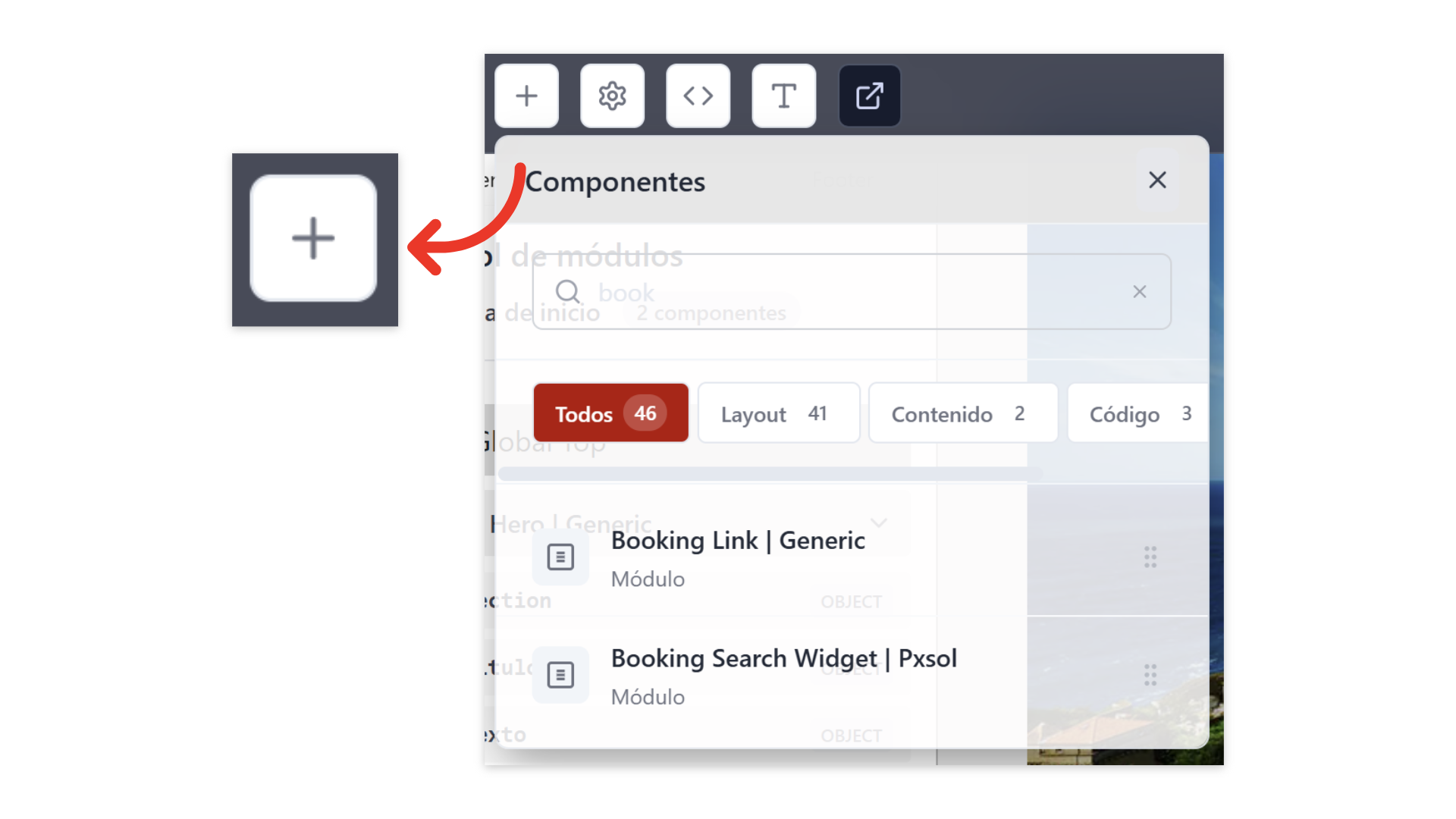 Haz clic en el ícono (+) para abrir el panel de módulos.