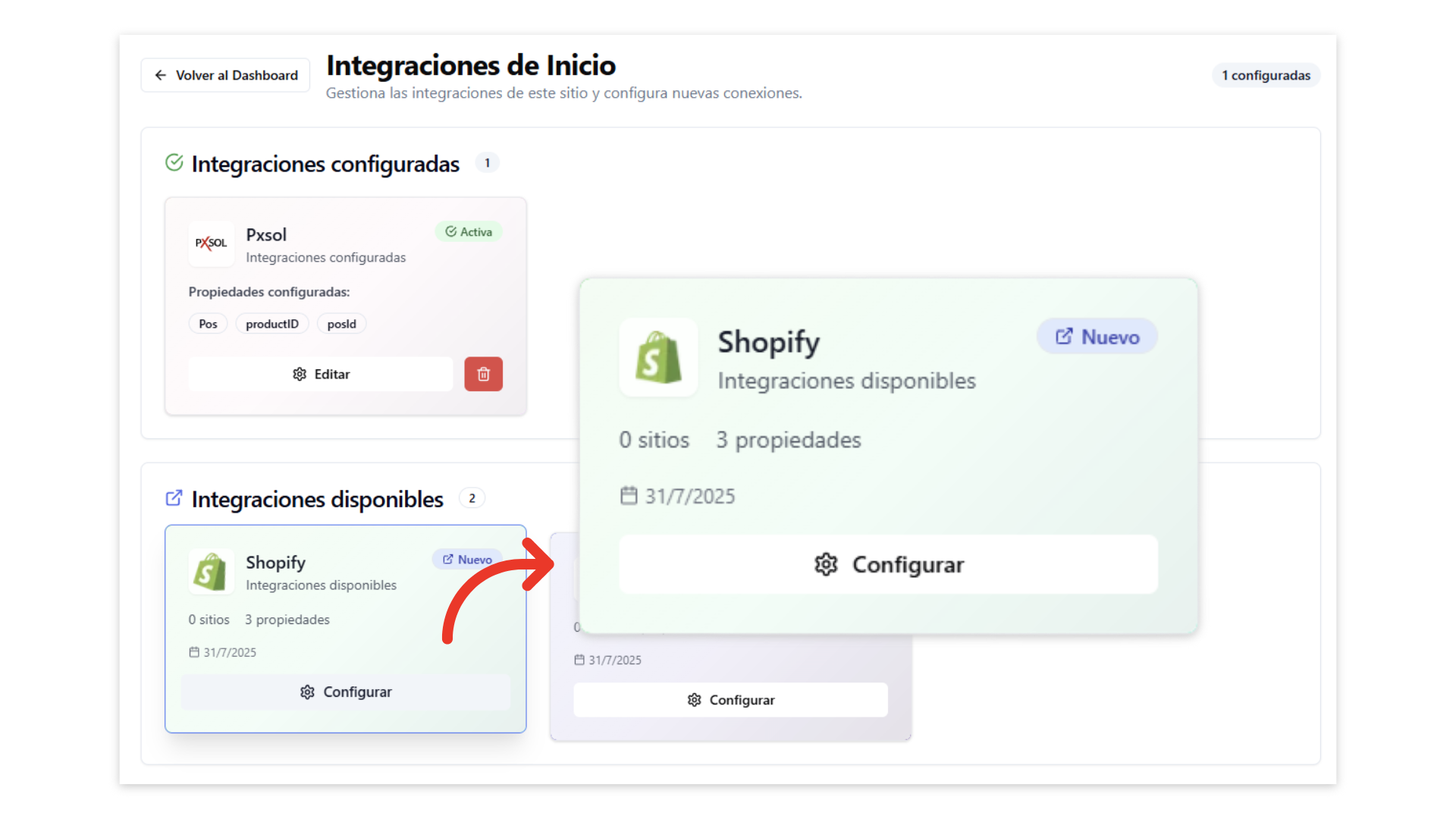 En la sección “Integraciones disponibles”, identifica el servicio de Punto de Venta y haz clic en “Configurar”.