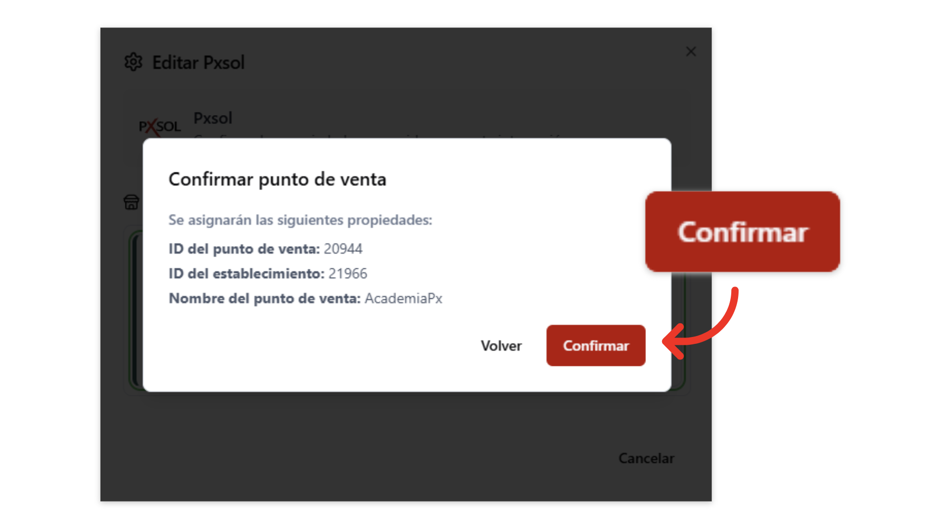 Haz clic en “Confirmar” para guardar la integración.
