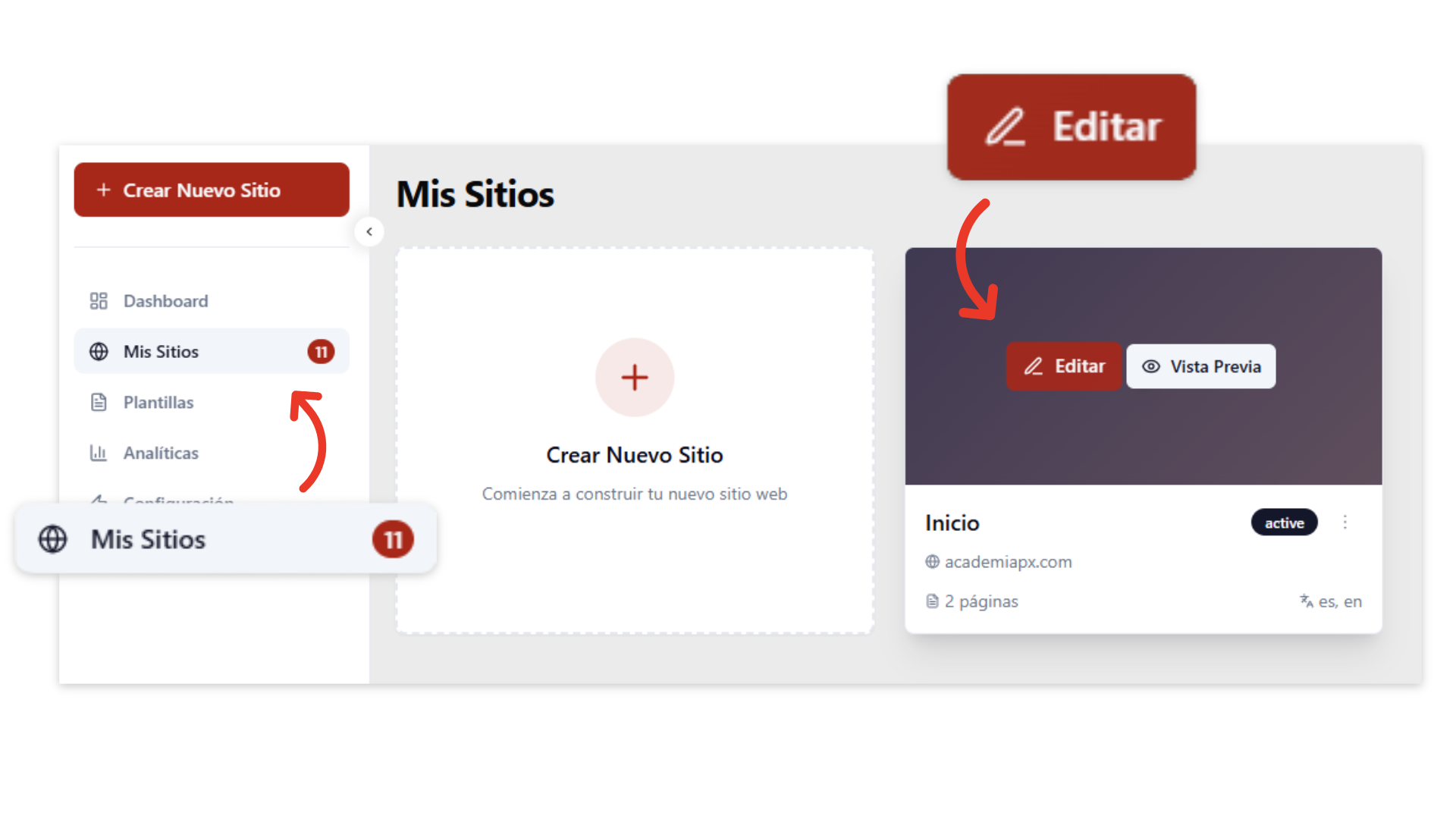Ingresa a la sección “Mis Sitios” desde el menú lateral izquierdo.